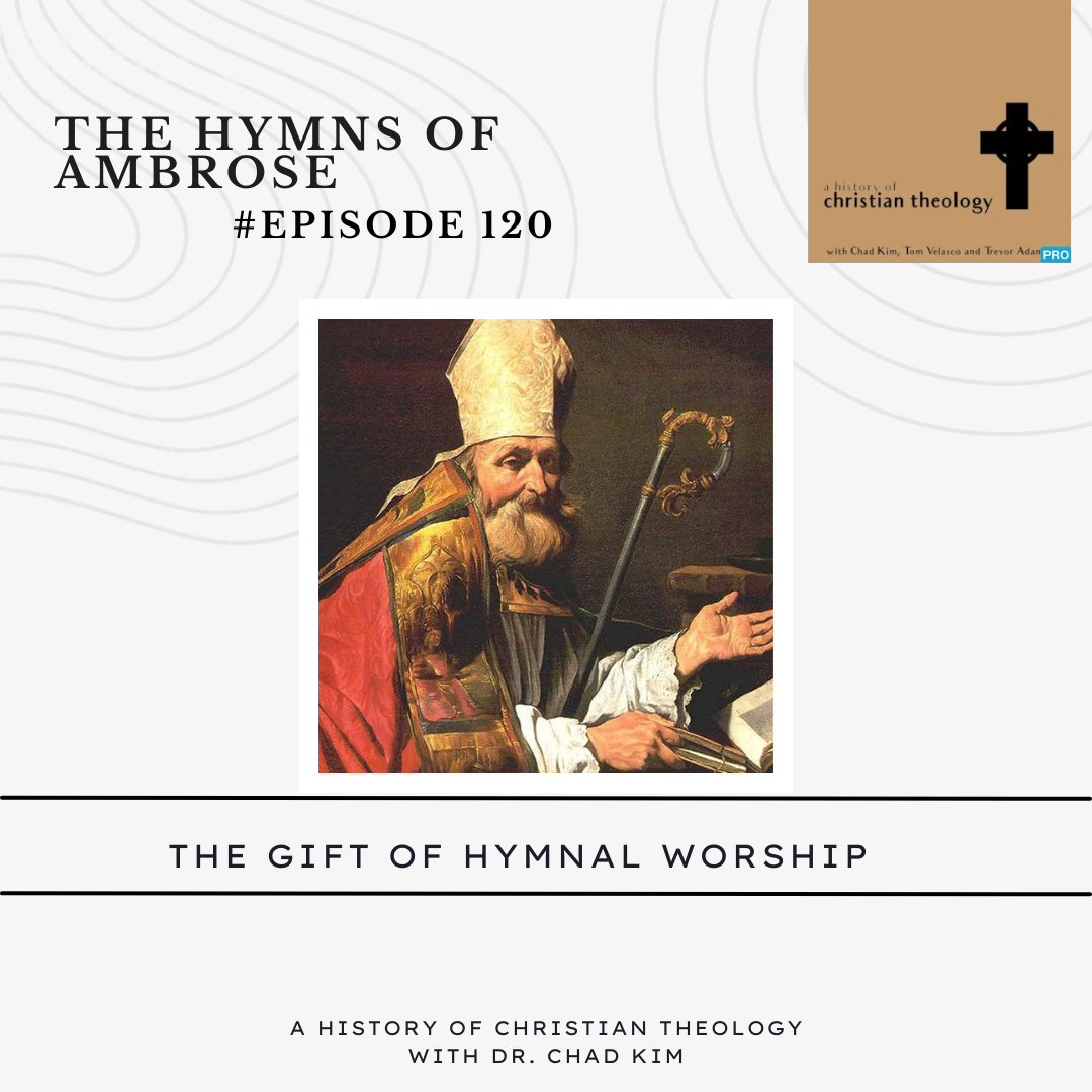 Hello and welcome to a history of Christian theology. My name is Chad Kim. This week it will be a conversation between Tom and Trevor and I, and we will discuss some of the hymns which are associated with Ambrose of Milan. As you may know from past episodes, Ambrose Ambrose of Milan was a bishop in Milan, and he is a convert to Christianity in his adult life. And one of the things that makes Ambrose so significant is his importation and creation of him that he for the Christian church. So St. Augustine tells us that it was Ambrose, who essentially sort of created the the Western idea of a him. So a lot of our notions about hymns and singing in church, go back to the early fifth century, and the person of Ambrose of Milan and actually late fourth century. So I hope you'll enjoy this conversation. I also wanted to say thank you to Claire Bowman, who just became a Patreon supporter of the podcast. So see, she joins a crew of other people who are making donations to help keep this podcast live, and keep it available in the entire back catalogue. And I also recently had a question from another listener who started back from the beginning. And she was asking me about origin. And and some of like the history of the relationship between origin and later thought. So I know that people are still going back into that back catalogue and are benefiting from the entirety of our of our conversations over these last many years. It's hard to believe we're drawing on six years, actually seven years of doing this podcast. So yeah, so I think I appreciate all of the support that people give. If you have questions, please do. message us on facebook.com or on Twitter. And let us know, if you if you know if you have other questions or other suggestions, and rate us review us on iTunes, consider joining and supporting us on Patreon. I have some conversations that I'm really excited to coming up have a conversation with Hannah nation about Chinese Christianity, conversation with Mike habits about heaven. Mike McClymont, about hell. And so we've got a lot of stuff coming up for you and maybe a little bit far distant future, Stanley Hauerwas, has also agreed to come on the show. So a lot of stuff coming up. Thanks for listening. And so here's the conversation on Ambrose and hymns.